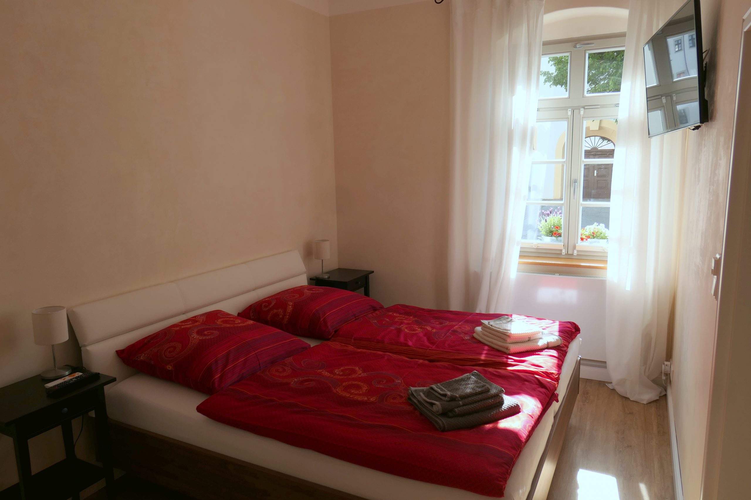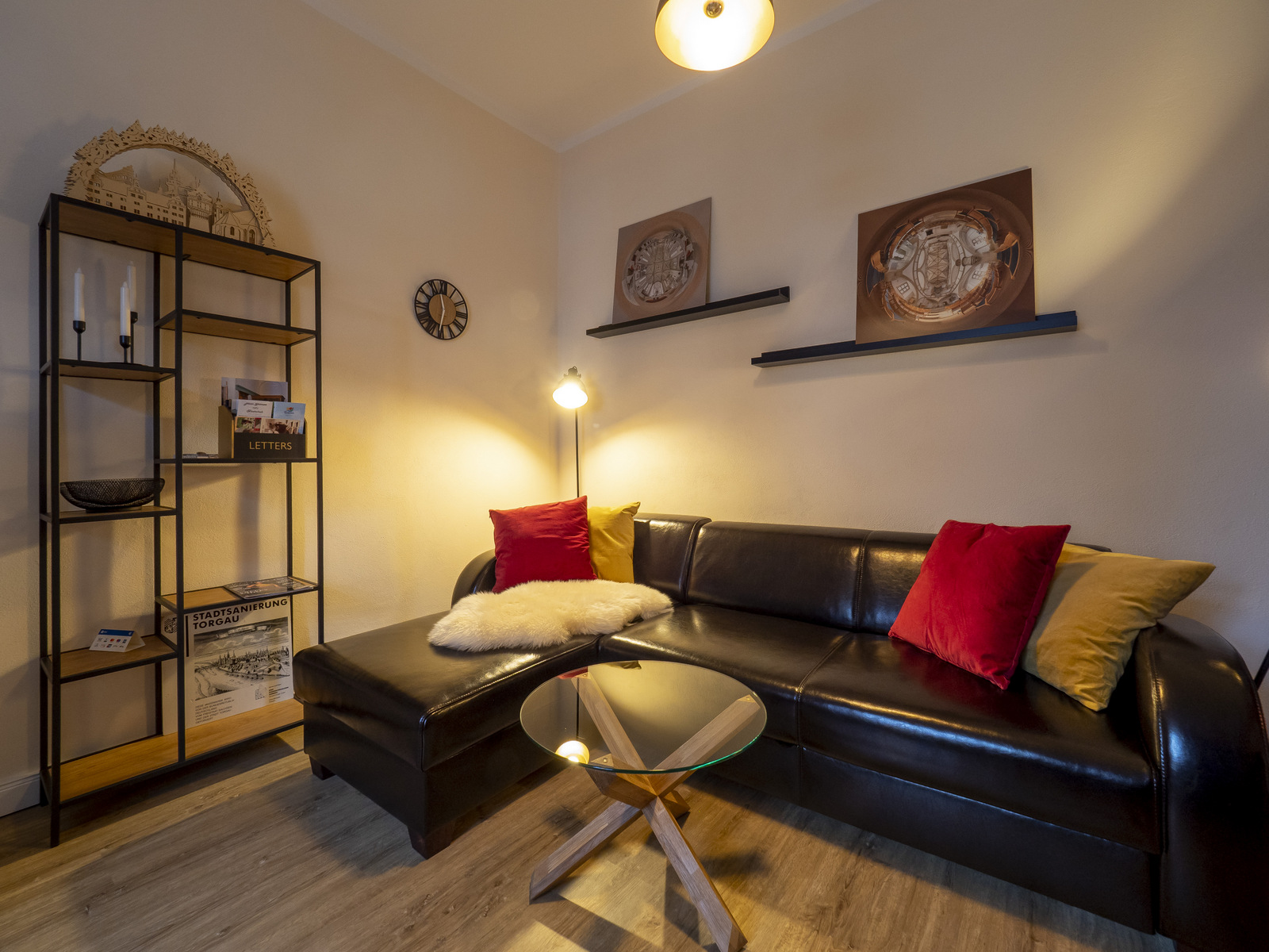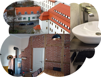 Die 40 m² große Ferienwohnung „SchlossGarten“, befindet sich im Erdgeschoss eines neu sanierten, mehr als 200 Jahre alten, als Einzeldenkmal geschützten Hauses unmittelbar vor dem Haupteingang von Schloss Hartenfels. Sie bietet einen großzügigen Wohnraum mit Kamin, ein Schlafzimmer mit Doppelbett, eine voll ausgestattete Küche und ein Badezimmer mit Du/WC.