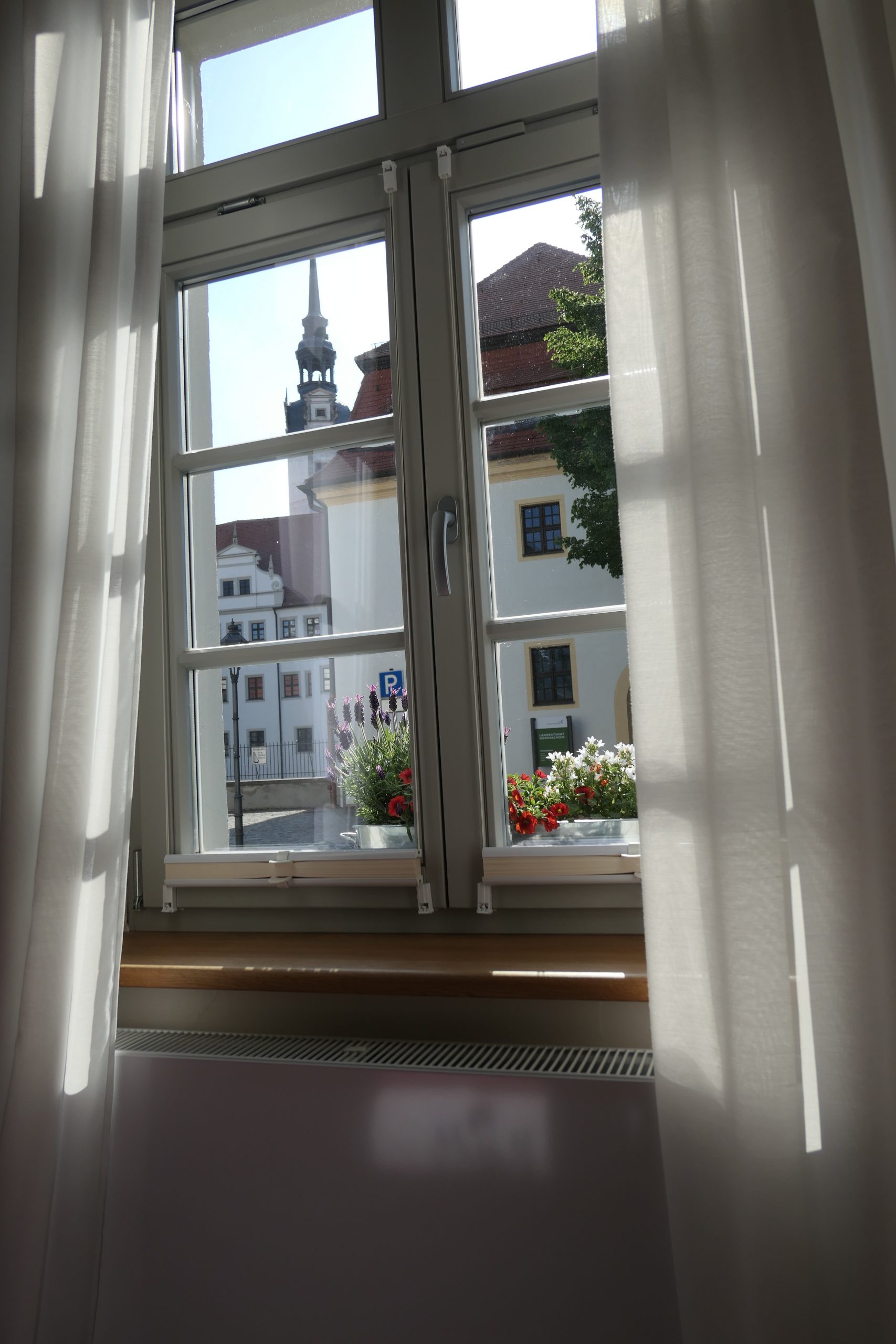 Nur in der Ferienwohnung SchlossGarten genießen sie den exklusiven Panorama-Blick auf das SCHLOSS Hartenfels und in den RosenGARTEN. In direkter Nachbarschaft, gerade einmal 20 m vom Haus entfernt, leben Torgaus tierische Wahrzeichen, die zwei Braunbären Bea und Benno in ihrem beeindruckenden Bärengraben.